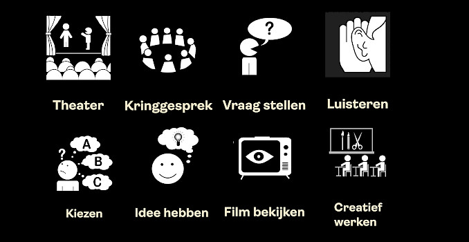 NB. Om aan te sluiten bij het werken met pictogrammen in het speciaal (basis) onderwijs hebben we deze verwerkt in ons online lesmateriaal. Hieronder vind je de pictogrammen en de betekenis van hoe wij deze hebben ingezet.