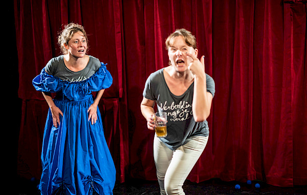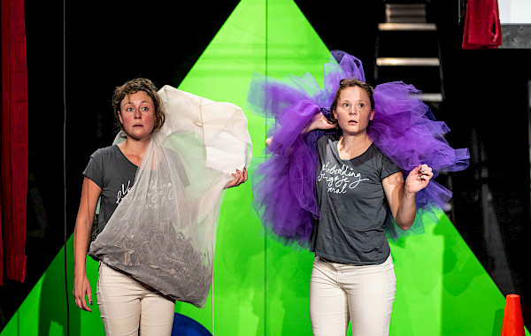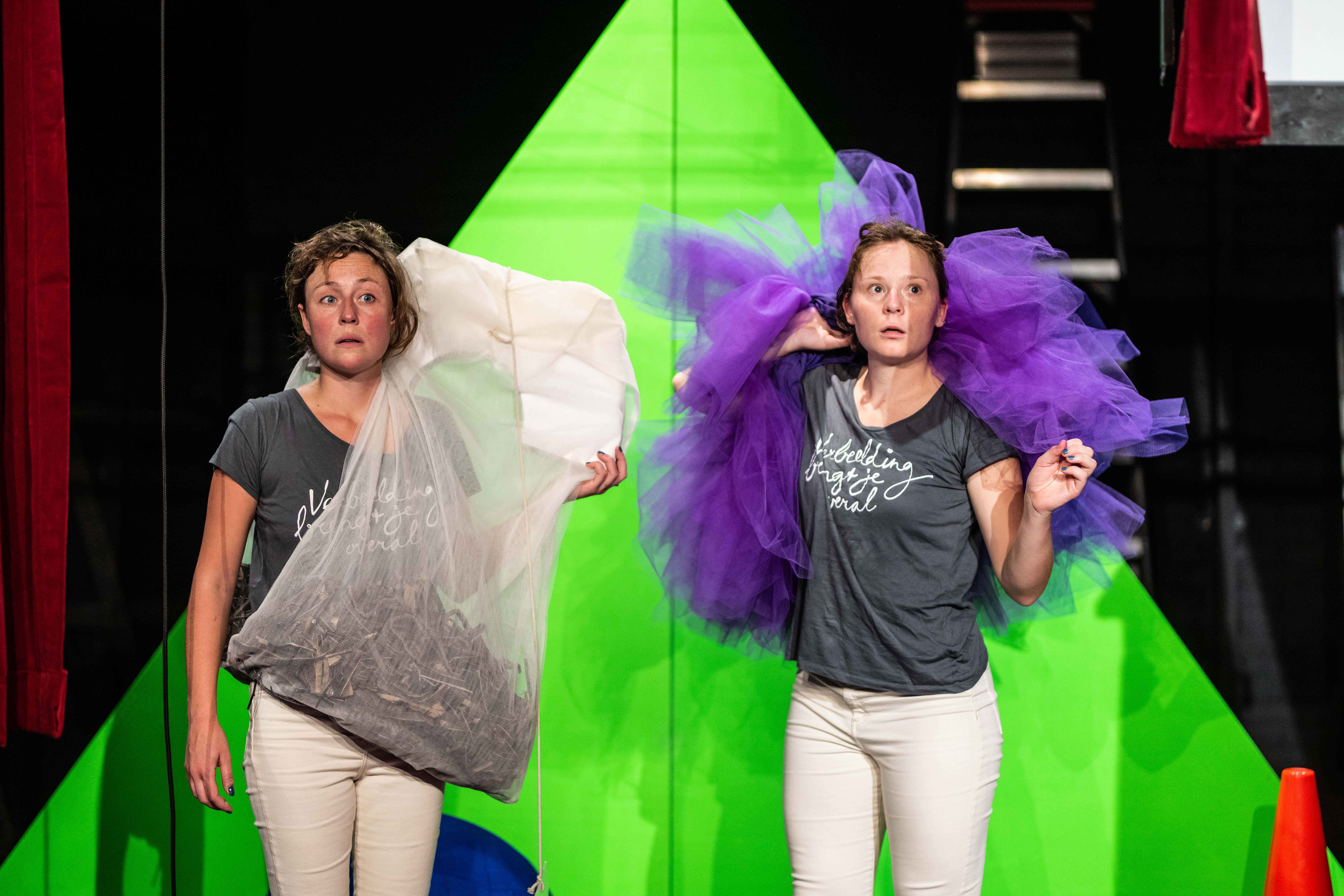 Coupdeboule is made up of theater creators Eileen Graham and Katelijne Beukema. With imagination as their point of departure, coupdeboule searches for answers to difficult problems like what is real and what isn’t. They create playful, philosophical productions that aim to stimulate the audience’s imagination no matter their age. Their work is colourful and physical.