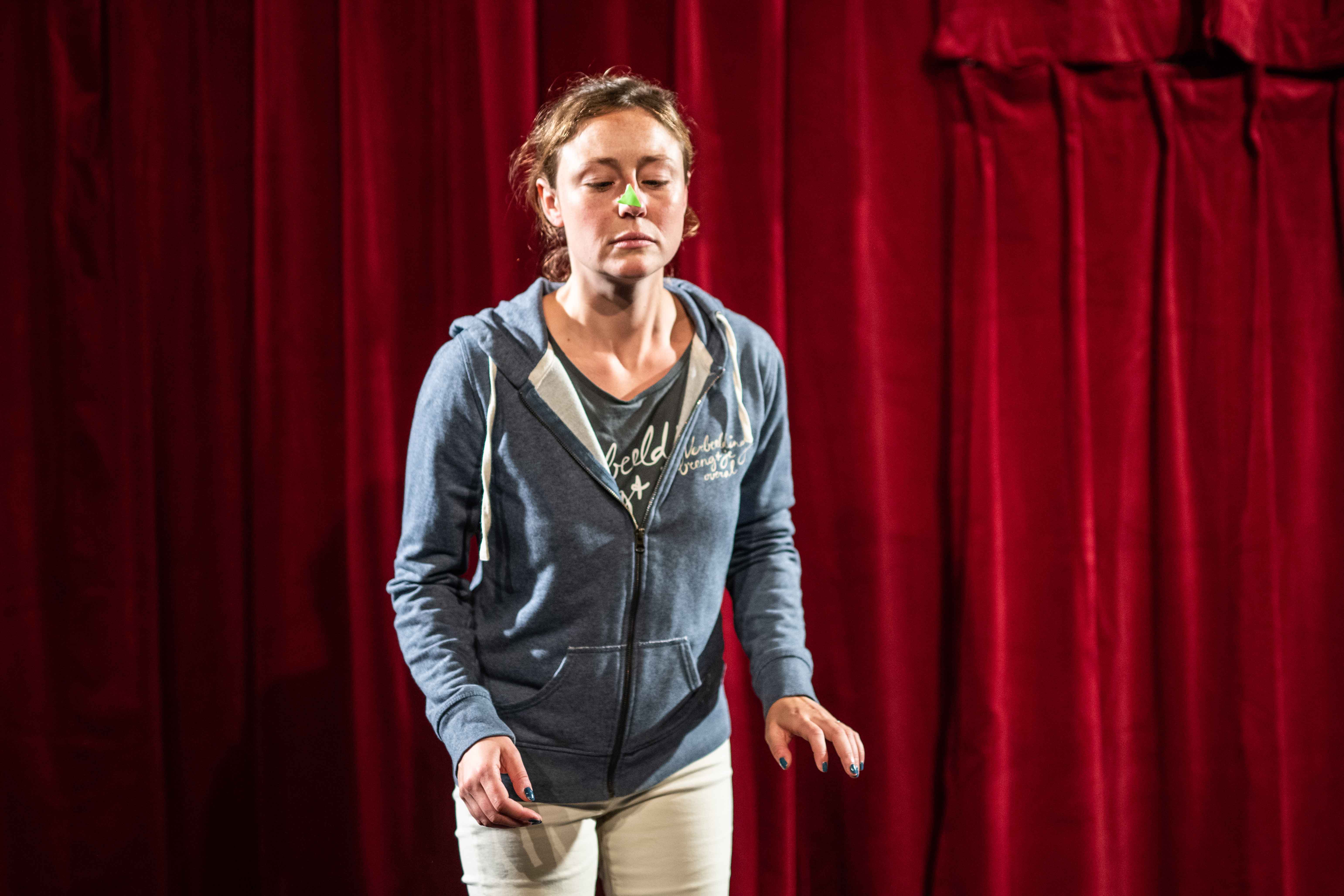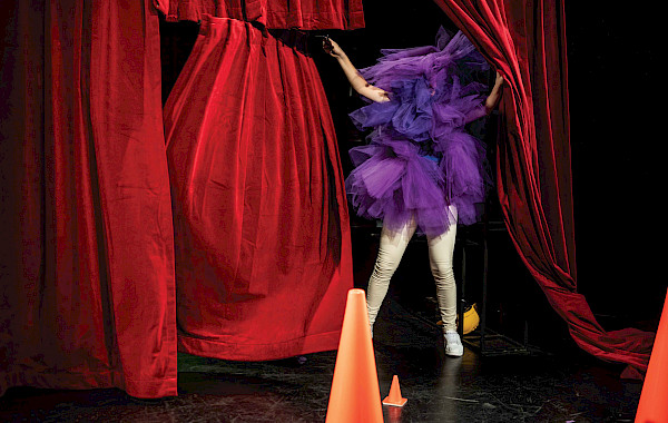 Audience facilitator Thea ter Doek prefers everything to be perfectly clear and organised. But being a control freak and theater aren’t very compatible. In her attempt to make everything run as smoothly as possible, Thea triggers a wondrous world around a large red curtain. A world in which police officers cough up blue balls, people suddenly change in appearance, tea bags take on gigantic proportions and abstract forms are suddenly endowed with meaning. Let go of all control is what this show is suggesting: it isn’t that useful anyway.